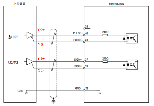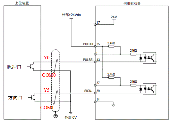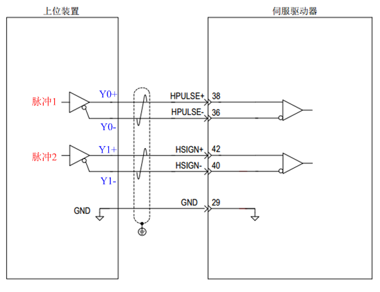 2、硬件接线。(以汇川H3u PLC控制IS620P伺服为例)