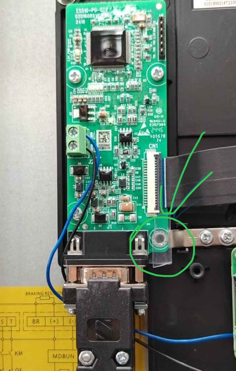 PG卡与本体变频器PE连接螺丝用胶片垫中间