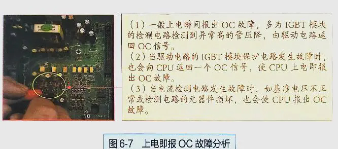 变频器OC故障,通常分为两种情形:一种是上电后立即出现OC故障,另一种是在启动或运行过程中才报OC故障。上电后立即报OC故障表明CPU发现过载或电流检测电路损坏,需要详细检测以确认问题根源,通过分析电路可识别是否为过载或电流检测问题。