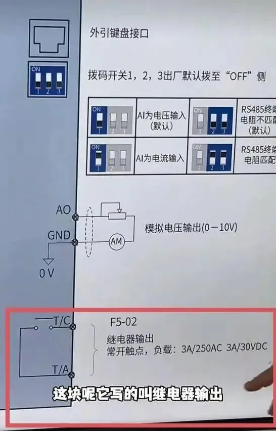 AO+GND :模拟量的输出(可以理解成这个变频器一个10V的电源,比如接一个电位器)