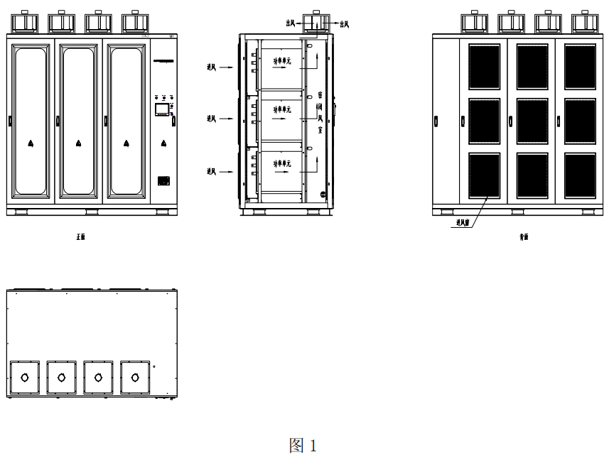 从功率柜散热系统图可知:功率单元内部散热系统通过安装在单元内的风机强制冷却单元里的散热器,使每一个功率单元满足散热需求,同时,由于功率单元内风机吹走热风,使其进风处的柜体内形成强力负压,柜外冷风大量进入高压变频气内,通过功率单元风道对单元散热器进行冷却。同时,由于柜顶风机大量抽风,使其密闭风室内形成强力负压,加速功率单元内热风进入密闭风室,通过柜顶风机抽出高压变频器柜外。通过建立严密畅通的风道,以及在功率单元内设计强制风冷,大大提高了高压变频器散热系统的散热能力和效率,同时,也可以减少散热器体积和功率柜体积,实现高压变频器的小型化,为用户安装高压变频器节省空间。