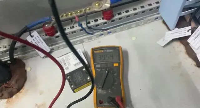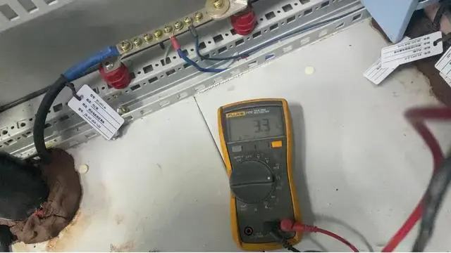 再回到电柜,把刚才拆的线再测一下电阻,现在没问题的,三相电阻平衡,再测下输入电压,395伏,电压也正常,把三条线接回去复位,让现场把电机开起来,电机现在能开起来了,再测一下它输出电压,现在频率输出是45,测到变频器输出电压370伏现在没问题了。