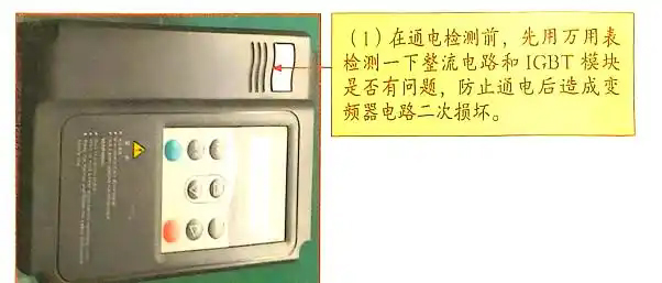 1.在进行通电检测之前,首要任务是利用万用表对整流电路和IGBT模块进行细致的检查,以确保它们的完好性,从而避免在通电过程中可能导致的变频器电路的进一步损坏。