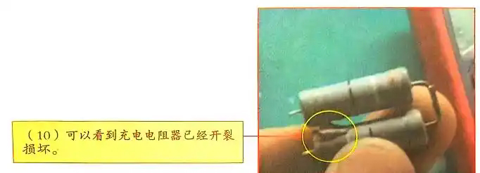 10.观察发现,充电电阻器已经出现开裂并损坏。