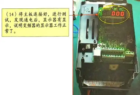 12.一旦引脚焊接完毕,便可着手装配变频器的主板,并进一步进行通电测试。首先,变频器能够顺利开机,随后我们连接电动机进行功能测试,确保电动机能够正常运转,从而验证故障已得到妥善解决。